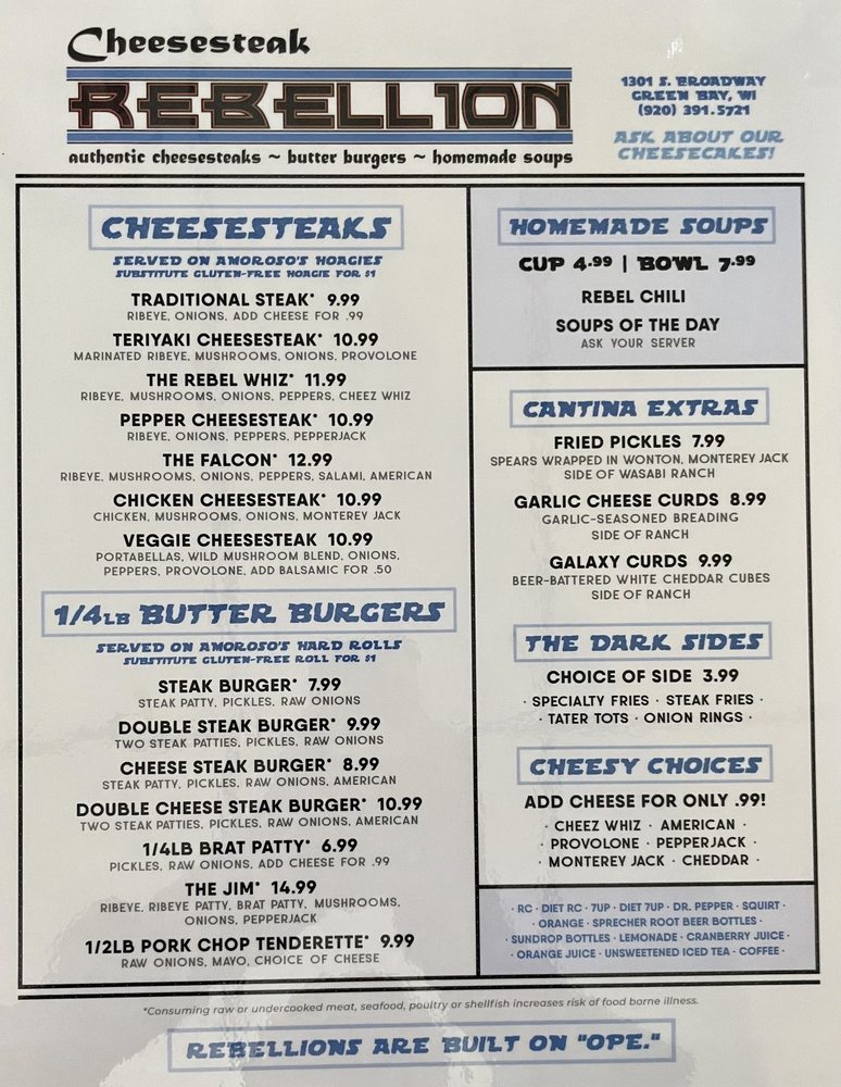 Cheesesteak Rebellion Menu (2025 Update)